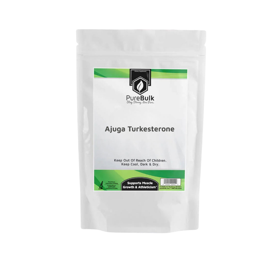 From a biochemical perspective, turkesterone is structurally similar to insect molting hormones (ecdysteroids), but in humans, it differs from androgens or synthetic anabolic steroids. Its proposed mechanisms involve signaling pathways (such as PI3K/Akt/mTOR) rather than direct binding to classical androgen receptors. PureBulk standardizes its Ajuga Turkesterone supplements to a 10% extract to deliver a measurable and consistent concentration.