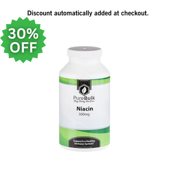 PureBulk offers two forms of Vitamin B3 supplements: niacin and niacinamide. The chemical difference between the two forms is that niacinamide has an amide group attached to the basic niacin form. Both compounds can convert into the coenzymes NAD+, NADP+, NADH, and NADPH, playing key roles in energy metabolism and anabolism.